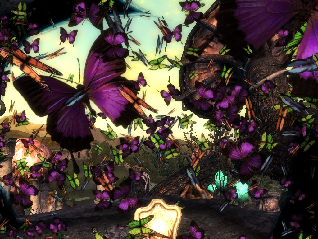 ●その4,狂気の島へ 瞬間,周囲の壁がすべて無数の蝶に変わり,男は消え,見たことのない風景が広がっていた。消える直前,男は「“ゲートキーパー”に気をつけろ」と言っていたが,なんのことだろう? |