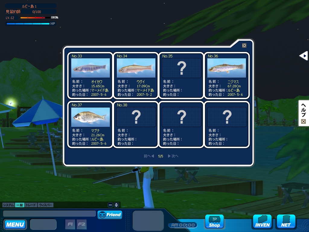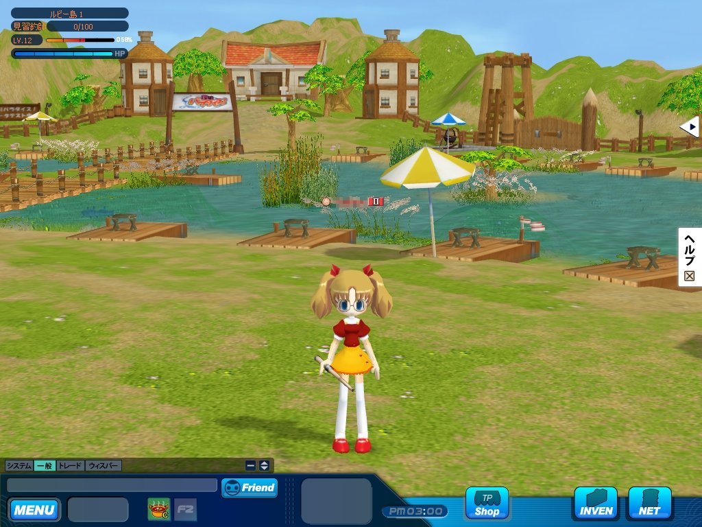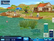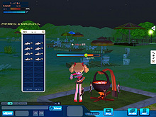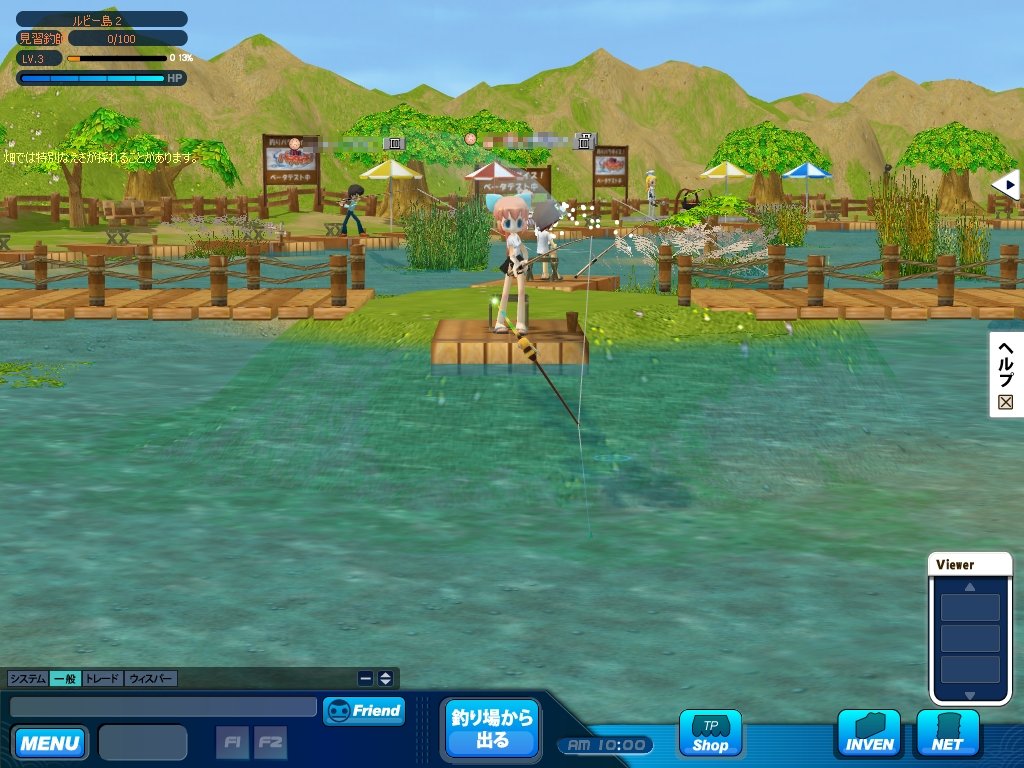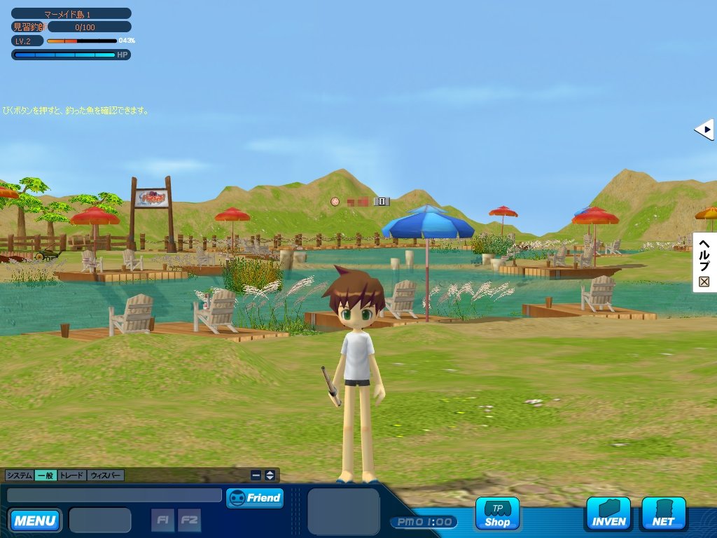 本作の舞台は,日本のどこかにあるという「パラダイス県」。クローズドβテストで選べたマップは,「ルビー島」と「マーメイド島」の二つだ。どちらも淡水で,景色も似通っていたのがちょっぴり残念であった。両マップの違いは,釣れる魚の種類が少々異なる点だけで,難易度の差などはとくに無い。空いている椅子をクリックして座れば,すぐに釣りを始められる。
