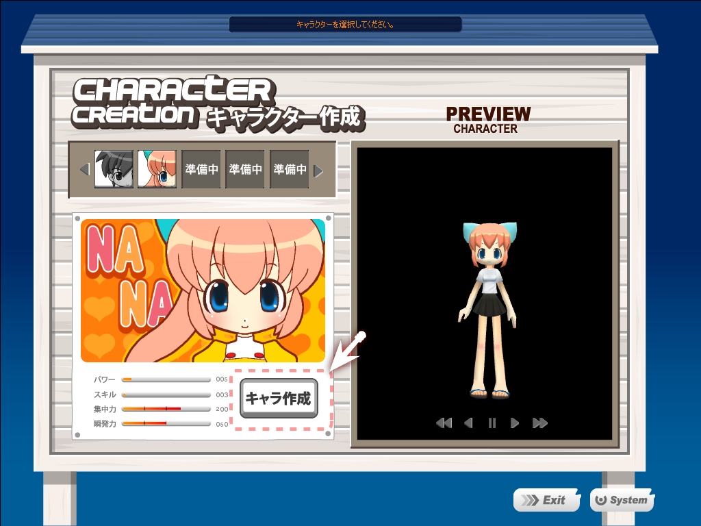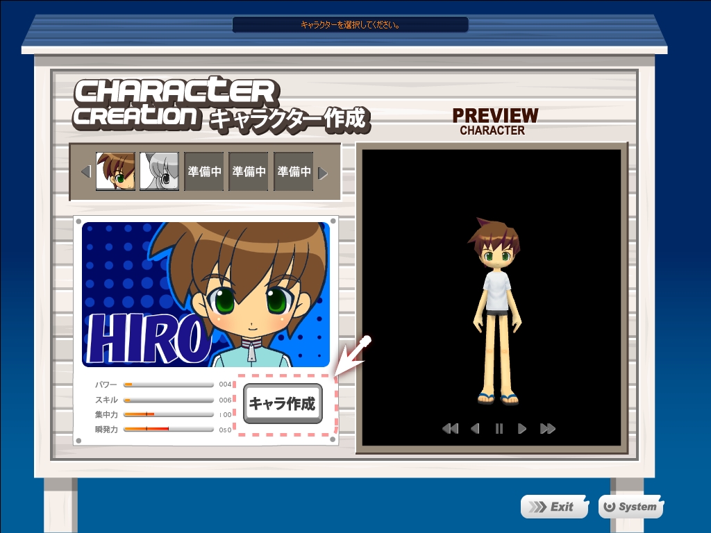 HPのほかに,キャラクターには「集中力」「テクニック」「瞬発力」などのステータスがあり,例えば集中力と瞬発力を上げると,クリティカルが出やすくなる。