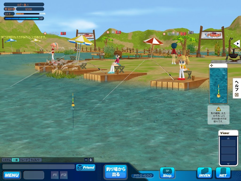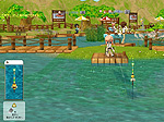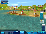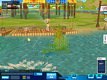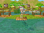 ゲームスタート時は初期装備として,釣竿と針,ハチのウキ,えさには「サシ」を所持している。座席についたら水面をクリックしてキャスティング,あとはアタリが来るのを待つだけだ。水中には魚影が見える場所もあるが,これは単なるグラフィックスで,魚のヒット率には関係しないようだ。釣れる魚の種類はマップ内の座席の位置,使用するえさとウキ,そして時間帯に左右される。