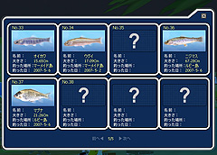 見事釣り上げた魚は,そのままショップで売ったり,釣り場にある調理場で料理したりできる。もしも初めて釣った種類の魚なら,右クリックで「図鑑登録」を選んで,魚の画像,釣れる場所とえさ,初めて釣った日付などを記録しておける。後から図鑑を眺めたいときには,ゲーム内の「MENU」ボタンから呼び出せる。