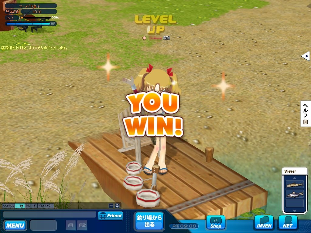 本作では,魚を釣り上げることで経験値がもらえ,キャラクターがレベルアップする。同じ種類の魚でもサイズによって得られる経験値は異なり,レベルが上がるとHPが増えて,引きの強い魚とも渡り合えるようになる。
