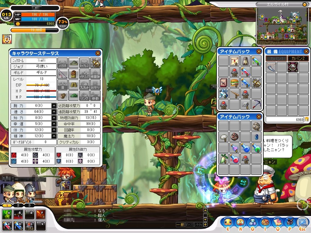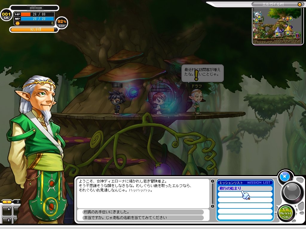 エルフの村長「ドラフ」からもらえる最初のクエスト。隣のマップでカカシ5体を倒すだけという簡単なものだ。カカシからは矢が手に入るので,アーチャー系でも序盤は資金いらずだ。