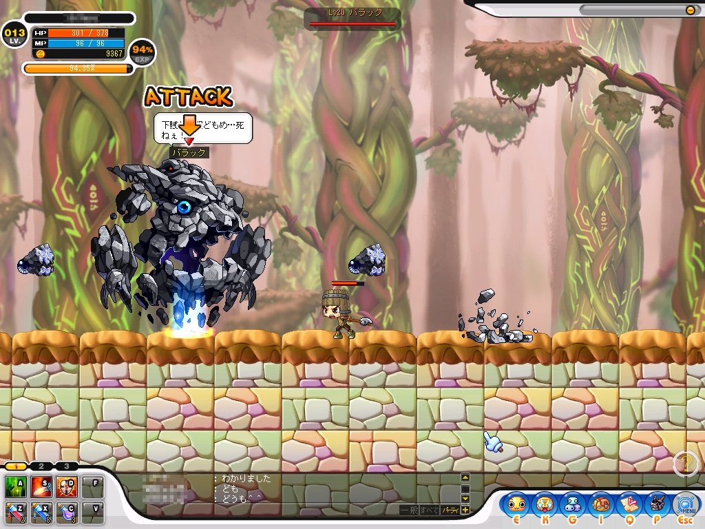 道具屋の少年シュルトのアドバイスで,東の森の「イースター」を倒しに出かける。青い虎縞イースターが落とすアイテムは,あとでシュルトの恋愛成就を手伝うクエストに使うので,ついでに倒そう。