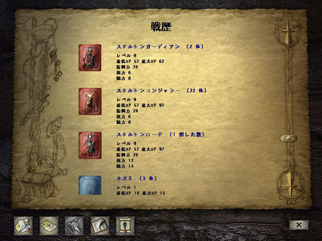<<ウォーリアーの流派>> ・ソード・エクスパタイズ……剣の技術を向上させ,攻撃時に追加ダメージを与えたり,命中率を向上させる(これは"剣"に関するスキルだが,ほかにもメイスやボウに対するエクスパタイズもある) ・リペア……戦闘で破損した装備品を修理する ・エンチャント・ウェポン……装備品に"魔珠"を埋め込み,キャラクターのステータスや耐性を強化する |