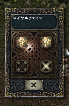 | アミュレットに,本文中で軽く触れた"魔珠"を二つはめたところ。ここのアミュレットにはスロットが四つあるが,キャラクターのスキルレベルが低いため,一つの穴がふさがっている |
