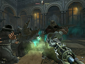 Painkillerでは,「Max Payne 2」や「Trinity」などで人気の(映画「マトリックス」のような)バレットタイムを発動可能だ。これは,プレイヤーキャラクターの移動速度はそのままに,モンスターだけがスローな動きになるもので,5秒間程度自由に攻撃したり動きまわったりできる。