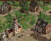 建設すべき建物には,住宅のほかに資源供給に不可欠な風車(食料)や鉱山(鉄鉱)のほか,鍛冶屋や船着場などがある。もちろん,新世界の諸部族でも文化は異なっていて,中南米の文明は石作りの神殿などを建設して作物生産までこなすが,北部の部族はウィグワム(テント)で生活しながらバッファローを追うというスタイルだ。それぞれの建物ではいくつかの技術アップグレードができるようになっており,兵士ユニットの攻撃や防御能力を向上させることができる。資源の供給もシンプルなもので,風車の周囲で取れた農作物はほかの建物に輸送したり食料に加工する必要はないし,それは鉄鉱や木材でも同じこと。面倒臭い部分はすべて削り取られ,ゲームの状況を素早く進展させていくことが重要視されているのがAmerican