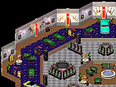 既存の経営シミュレーションと大きく異なるのは,敷地の形状が決まっており,その限られた区画内にスロットマシーンやカードテーブルを設置し,魅力あるカジノフロアを作らなければならないという点だ。フロアに設置できるギャンブルマシンは,先に挙げたスロットマシーンに加え,ポーカーゲーム機,ブラックジャック,ルーレット,クラップ,パイゴウ(中国式ポーカー),バカラ(キューバ式カードゲーム)など12種類。このほかにも飲食店や両替所,トイレ,セキュリティオフィスから,スポーツギャンブルやキノ(中国式ロト)なども用意されており,これらのオブジェクトを設置するたびにどんどん賑やかな画面になってくる。