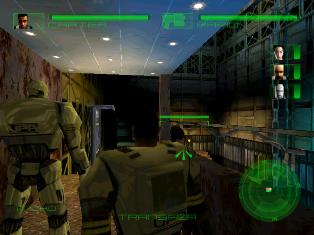 しかしProject Edenの特質は,なんといっても4人のキャラクターたちを同時に操作していくという部分にあるだろう。UPAの4人組は,チームのリーダーであるカーター,機械に関する知識が豊富なアンドレ,技術情報担当のミノコ,そして前衛としては重宝するアンドロイドのアンバーだ。プレイヤーは,彼らを巧みにコントロールしながら援護射撃をしたり,鍵の掛かったドアを開けるために違う部屋に分かれてコンピュータを操作する,というような行動を取っていく。