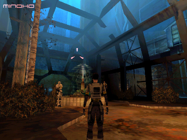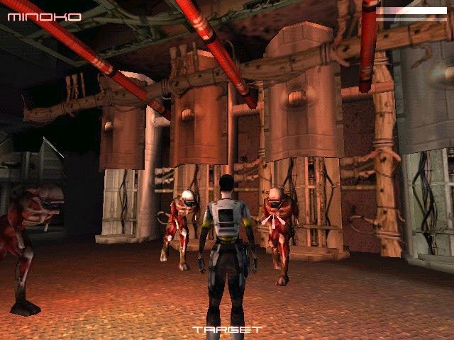 Edenは,11種類のマップからなるミッション制になっている。よどんだ雰囲気の都市空間として統一されてはいるものの,明るいハロゲンライトに照らし出された工場地帯やショッピングセンター,球技場,テーマパークなどさまざまな風景が用意されており,一つのミッションが多彩な場所になっているイメージを受ける。"本物の生肉"があるくらいだから"ニセモノの生肉"も出回っているようで,DNA操作などで増加した人口分を食わせるだけの食料を,人為的に作り出しているらしい。そんなこんなでプレイヤーの敵には,遺伝子が改造されたモンスターたちも登場する。その他"盲目のソサエティー"という謎の軍団や,スラムにはびこるギャングたちとも対峙する必要があるだろう。