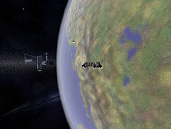 船の装備や物資の購入,情報収集できる酒場,そしてスペースポートの四つの地区は,都市の区画としてプレイヤーに提供される。これらの施設をもった惑星は全部で48個も用意されており,ほかにもアステロイドや宇宙ステーションなど160種類に及ぶ土地に着陸可能だ。実際,銀河系の大きな部分がマップ化されていて,15星系隔てた惑星に物資を運ぶなどというシチュエーションも考えられるだろう。ガス雲やアステロイドベルトなど,スペースシムにはお馴染みの自然現象(?)も多く存在する。
