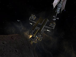 手っ取り早く現金を手に入れるためにプレイヤー自身が貿易船を狙うこともできるが,繰り返していればお尋ね者になってしまうことになる。プレイヤーの知名度が地に落ちてしまうのだ。この場合,プレイヤーは小惑星の内部に作り上げたパイレーツたちの隠れ基地を拠点にし,いつも強力な武器で武装したバウンティハンターたちに追い回される生活を強いられることになってしまう。