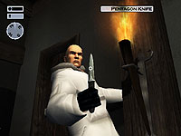Hitman 2で用意されている武器は,サバイバルナイフ,スナイパーライフルから,ガラット(絞首具)やマシンガンまでさまざまだ。音の静かなクロスボウもあるし,武装用の防具を着込んだ敵でも仕留められる50mmのライフル銃もある。また,双眼鏡やナイトスコープ,サイレンサ,時限爆弾などの小道具も豊富になっているようだ。
