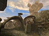 その好例となるのが,ゲームに登場するテルヴァンニ(Telvanni)族の村で,村民が巨大なマッシュルームの家で生活している。このテルヴァンニは,以前から魔法を愛するソーサラー種族として知られ,前作でもマッシュルームを使って魔法を繰り出すエピソードもあることなどから,Elder