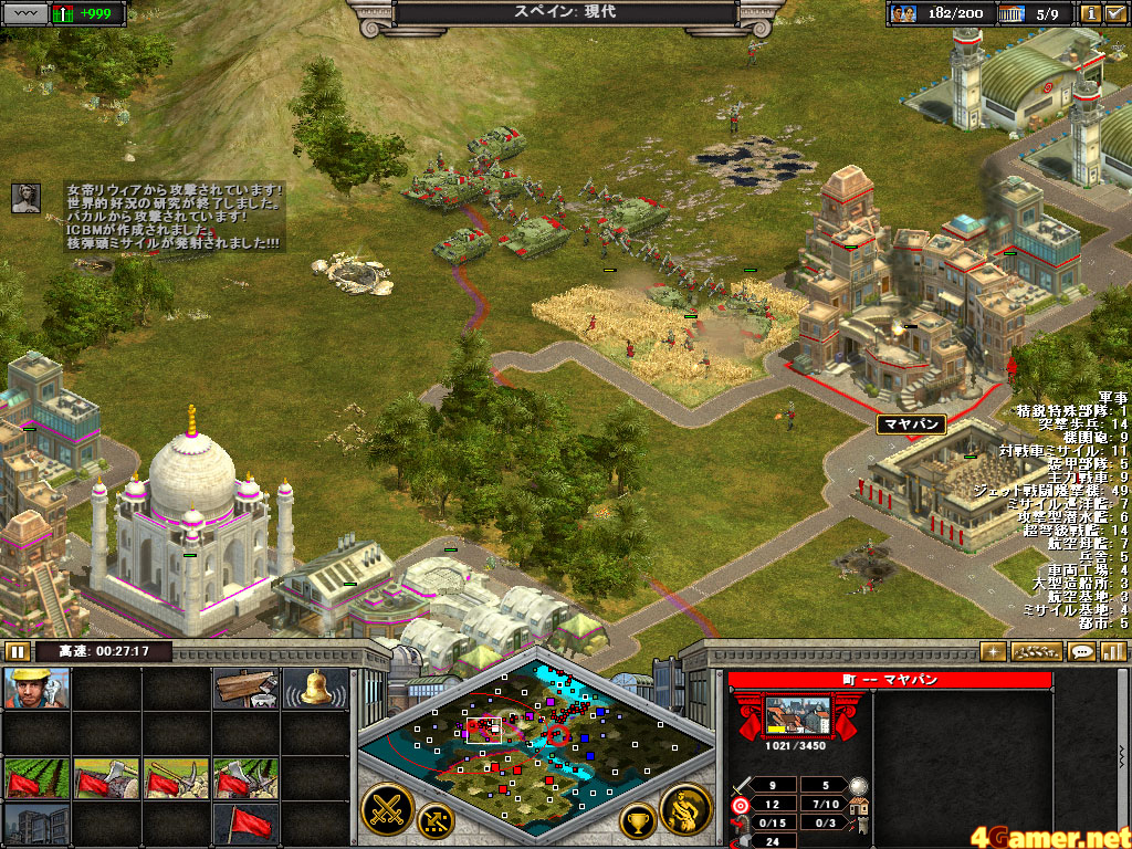 ただ,一つだけ気になる点を挙げるとすれば,外交的なシステムが非常にお粗末な点だろう。RoNが"戦略級"ストラテジーゲームを目指すのであれば,戦闘以外の駆け引き……つまり外交がクローズアップされていてもよいのではないか,と個人的に期待していたせいもある。過去のターン制ストラテジーゲームがそうであったように,群雄割拠した状態で駆け引きを楽しめるゲーム性を筆者はRoNに期待していた。ターン制のゲームでは時間が掛かりすぎて実質的に"Unplayable"だった過去の作品を洗い直し,リアルタイム制という新しい方式で"Playable"な形にまとめあげることを,筆者は本作に期待していたのだ。しかし,RoNの現状の外交システムは,AoEなどの外交システムを多少拡張した程度に過ぎず,駆け引き要素の一つとして扱うには少々無理があるように感じる。この点だけは,従来のRTSの呪縛から逃れられなかったのかもしれない。