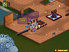 ところが,渡る世間は親切な人達ばかりだったのである。腹を空かせたビジターが現れるや,どこの家の人も「お入りなさい,一緒にディナーしましょう」と,ご飯を用意してくれるのだ。涙の出そうな親切に対して「迷惑です」と言うわけにもいかず,こちらが「ありがとう。でもシム人が餓死するかどうか実験中なので,そっとしといてください」という内容の英文を考えているうちに料理は出来上がってしまう。結局この時は餓死するつもりが,ただ行く先々でご馳走になっただけであった。「シムズオンライン」の世界は,優しい人ばかりだ。