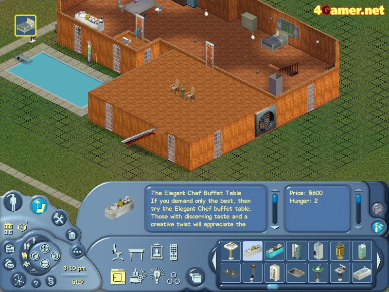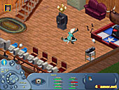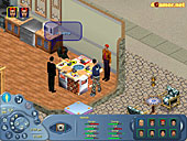 | お客様用のビュッフェテーブル。残念ながらforGamer's Roomのものは無料ではありません。我々も本当に貧乏なの | 喧嘩の一シーン。「シムピープル」みたいに漫画チックなものではなく,技の掛け合いとなる | 編集部のIwahamaは,まだ右も左も分からないほかの編集スタッフのお金を巻き上げて今の部屋を作ったのだ |