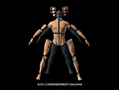 SOFで使用されていたキャラクターのレンダリングシステム"GHOUL"は,プレイヤーが腕や頭など個々の体部に照準を定めることを可能にし,相手も撃たれた場所によっては足を引き摺るなどしていた。このときは,個々の部位に分かれたあらかじめ作られたモデルをかけ合わせて一つのキャラクターを作り上げるような手法が使われていた。それはそれで効率の良いものだったのだが,少ないソースの組み合わせなのでバリエーションが少なく,1体につき300ポリゴン程度という制約もあって,大きな効果を生み出すまでには至らなかった。