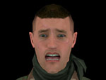 SOF2では,その第2世代となる"GHOULII"を開発しており,メッシュベースではなく分類体系的なスケルタル・アニメーション(先に骨格を制作してアニメーションを付け,そこに肉となるポリゴンを付着させていく。欧米のPCゲームでは一般的になりつつある技術)を導入している。弾丸は,このキャラクターモデルのピクセルごとに反応するため,より正確なダメージ描写を可能にしているのだ。これにより,頭部だけでも14か所にも及ぶ場所に分かれてダメージポイントが設定されるなど,ヒットゾーンが36か所にまで増加しているのである。またGHOULIIシステムはメモリに影響を与えることもなく,キャラクターモデルに帽子やメガネ,個々の武器を加えることができるのである。