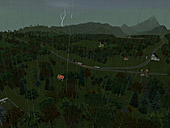 さらには,時計の針に合わせて昼夜の移り変わりも表現されている。空に浮かぶ雲は悠々と流れていき,やがて夕焼けと共に影が長くなり,建物の窓から灯りが漏れ出し,周囲が群青の夕闇に包まれていくのである。雲は,雨雲へと成長し,雷雨へと発展することもあり,こういった事象や天候の変化がゲームプレイにどう関わってくるのか楽しみだ。