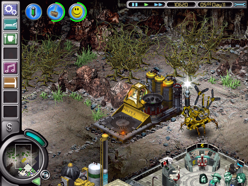 エイリアンの対処用に,護衛犬やコマンダーなどのアンドロイドを設置することも可能。敵の来襲に備えるというのが,Strongholdを思わせるシステムである。しかし,すべてのエイリアンが悪者というわけではなく,中には地球人と会話がしたいだけの友好的なものもいる。キャラクター同士の会話が全部で900パターンも用意されており,彼らのスピーチを聞いているだけでも楽しいだろう。