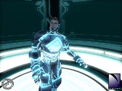 Ma3aによってデジタル変換されたジェットは,自分のカラーコードとして青色を選択してトロンに進入する。 シングルプレイヤーモードにフィーチャーされた30レベルを通して,プレイヤーキャラクターは青色のスーツを身にまとって冒険することになるのだ。また,映画と同じようにそれぞれのセクション(レベル)も色分けされていて,一応に黒を背景にした配色ながらも視覚的にも飽きが来ないようになっている。インターネットハブであれば,オレンジを基調に様々な色のデータが飛び交っていたり,緑はデータレイスによってウィルスに汚染されているサーバーのカラーコード,紫はゲーム終盤で到達するfCon本社のサーバーといった具合だ。