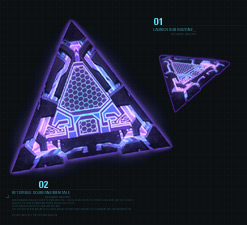 メッシュは,手の平に収まるほどの三角形の兵器で,発射速度の高いマシンガンとして利用できる。元々は,fCon社のデータレイスのために開発された武器らしい。 |