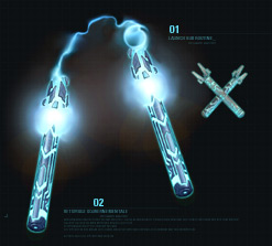 ヌンチャクのような至近距離戦用の兵器で,放出されるエネルギー波で敵プログラムをショートさせながらダメージを与える。そのため,アーマーを装着していないプログラムには有効であると言える。 |