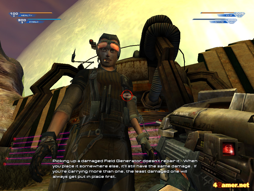 「アンリアルII」は,一つのステージが複数のミッションステータスによって成り立っている。"●●を調査しろ"とか"○○を作動させろ"とか,細かなオブジェクティブがそのつど与えられる仕組みだ。これらのオブジェクティブは,常に成否をチェックされる。達成したオブジェクティブステータスは"Completed",失敗したものは"Failed"と記され,ゲーム自体は終わらない。たとえば"生存者を救助せよ"というオブジェクティブで,これがまた実にあっさり死んでしまったりすることがある。しかし,そこでミッション自体が終了になるわけではない(中には即ゲームオーバーにつながる致命的なオブジェクティブもあるが)。これらの失敗がどう影響してくるのか,または本筋とは直接関係のないオブジェクティブを達成したときストーリーにどのような影響を与えるのか,そのあたりはまだ調査中だ。