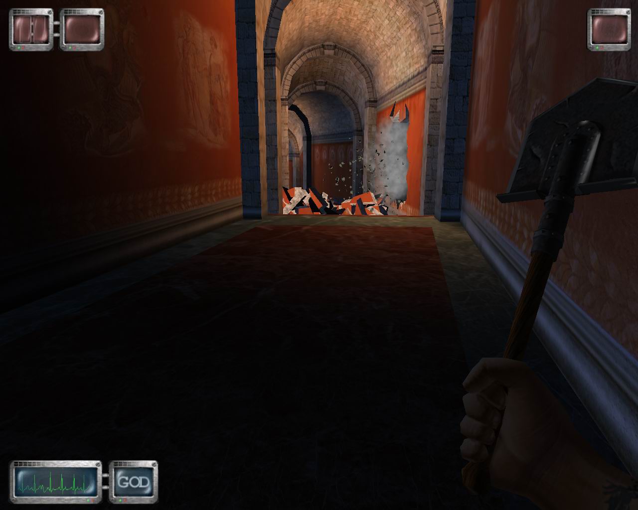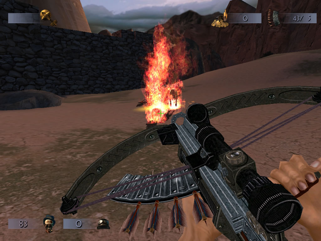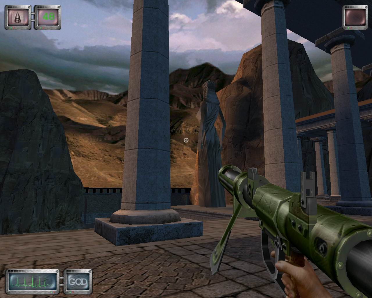 Will Rockのゲームスタート当初はいきなりミノタウルスが襲いかかってくるのだが,ウィルが初期装備で所持しているのは9mmのハンドガンとショベルのみ。これで何とかやりくりしながら,マップ上に散らばる他の武器を拾っていく。古代ギリシャになぜショットガンやマシンガンが落ちているのかは説明されていないが,クロスボウや手榴弾,地雷なども用意されている。ほかの兵器も興味深いものが多く,敵を石化して崩してしまうメデューサガン,敵が風船のように肥大して破裂するアシッドガン,小型の核爆弾を噴射して半径6mの周囲は丸ごと溶解するアトミックガンなどもある。これらの武器は,全部で11種類と最近のFPSにしては少なめだが,それぞれがまったく違った効果を持っている。アシッドガンのような,敵が死ぬ前に形状を変化させていくアニメーションは非常に面白い。
