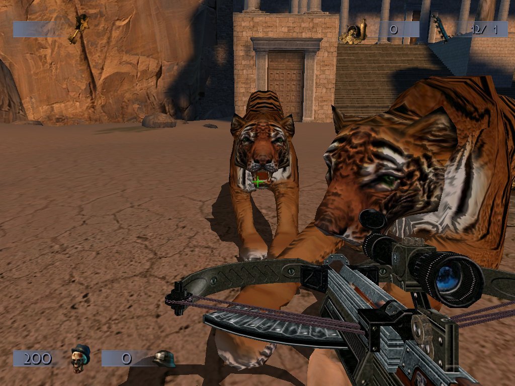 Will Rockのレベルは屋内外のものが適度に設置されていて,アリーナの中でハーピーやカルト教団と戦った後に,地下の通路を通ってミノタウルスを蹴散らしながら神殿へと進むという流れとなる。適度なパズル的要素も用意されており,ドアを開けるためのスイッチを探して,一つ一つ建物の中を探しまわったりもすることも。