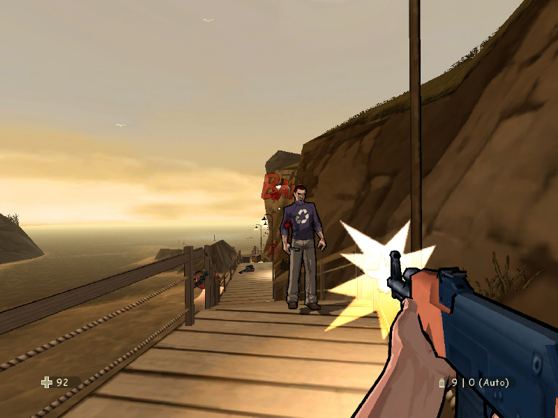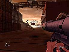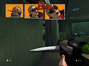 セル・シェーディングは,一般的な3Dゲームと同じ手法でゲーム世界やキャラクターをモデリングしているが,影/照明/ハイライト部分などのグループによって色彩を単一化し,黒線のアウトラインを強調することでセル画アニメ風の平面感を表現する技術。トゥーン・シェーディングとも呼ばれ,サンプリングなどの多さからレンダリングスピードに負担のかかる,最新のビデオカードに依存したシェーディング技術の一つといえる。XIIIは,PCのFPSでは始めてのこの技術が使用されたゲームとなるが,元々フランス国内で有名なコミックが元ネタになっているだけに,非常に違和感のないデキとなっている。