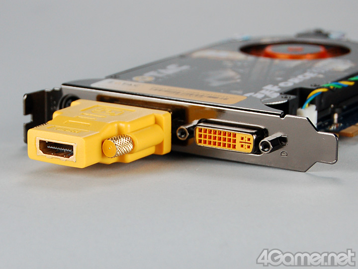 こちらもリファレンスクロックで動作するGeForce 8600 GTS搭載カード。DVI−HDMI変換アダプタが付属しており,標準でデジタルYCbCr&RGB(HDMI)出力が可能なのが特徴となる。チップクーラーは1スロット仕様。ゲームタイトルはとくに付属していない |