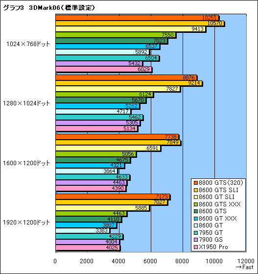 クロックアップモデルにはあまりいいところがなく,標準設定でも1600×1200ドット以上だとGeForce 8600 GTS XXXはGeForce 7900 GSの後塵を拝してしまう。