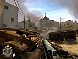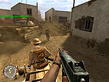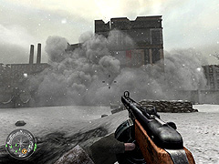 オブジェクトは細かく描き込まれ,雪の降りしきるスターリングラードの廃墟,荒涼とした北アフリカの砂漠,小奇麗な北フランスの小村など,かなりいい感じだが,せっかく細かく作り込まれているのに,敵弾を避けて走り回る状況が多く,ゆっくり観察していられないのがもったいない。