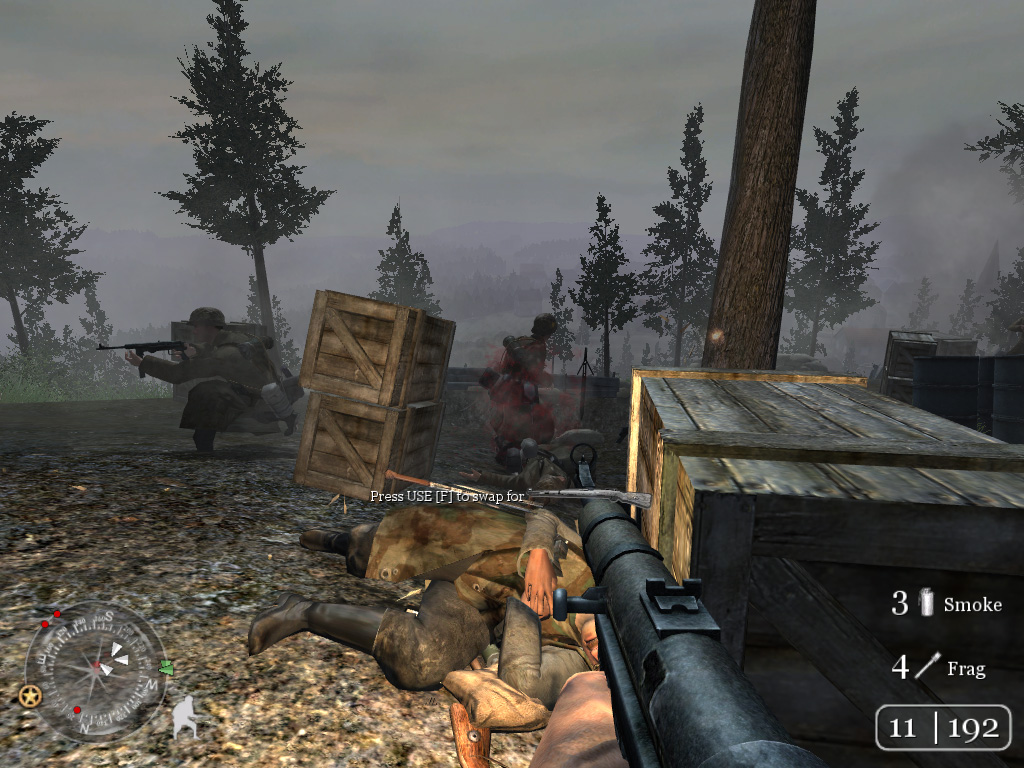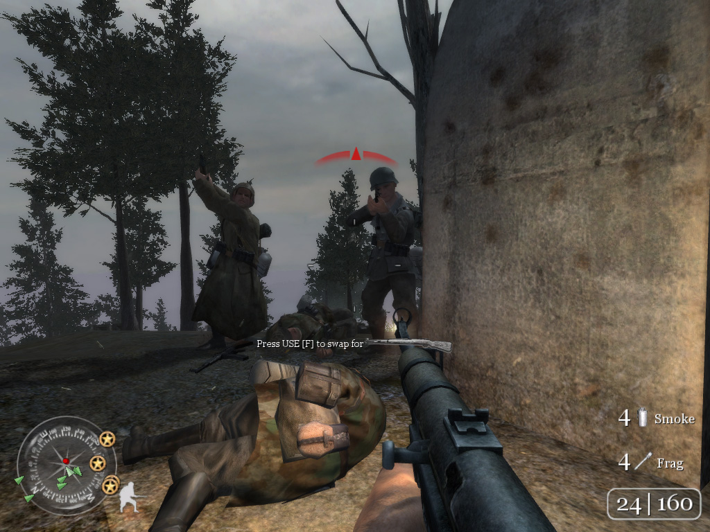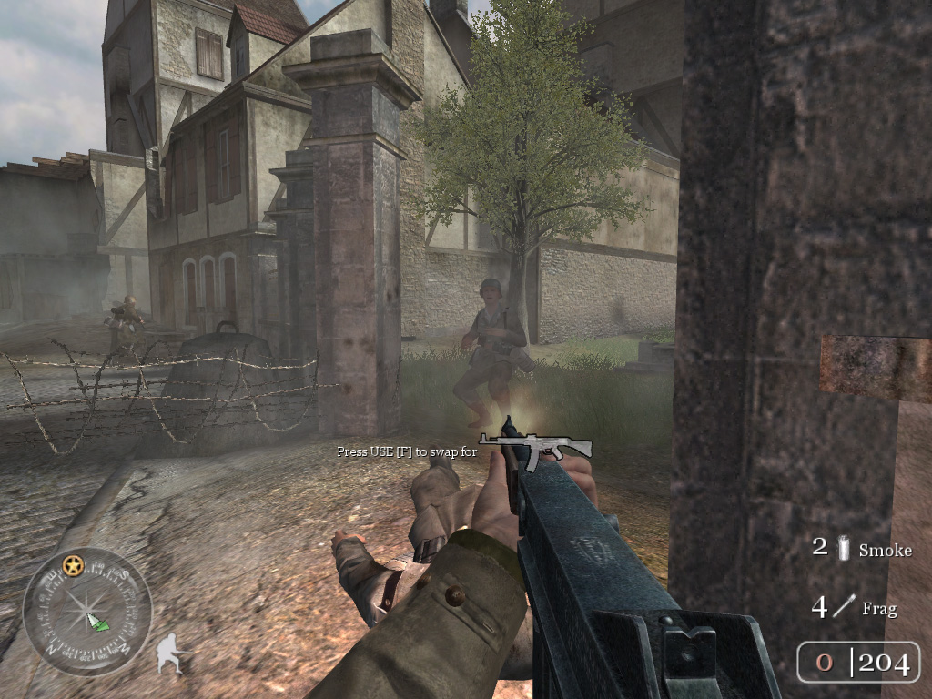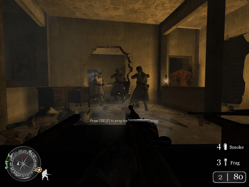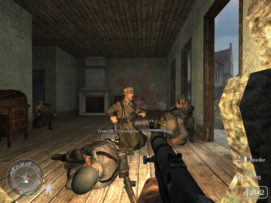 しかし,戦闘の難度は前作以上かも知れない。なにしろコースが決まってないのだから,どこからドイツ兵がやってくるか分からない。いつの間にか背後に回られて十字砲火の餌食,などということもしょっちゅう起きるし,敵味方ともAIは相変わらず優秀だ。
