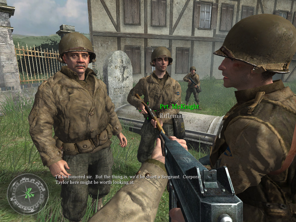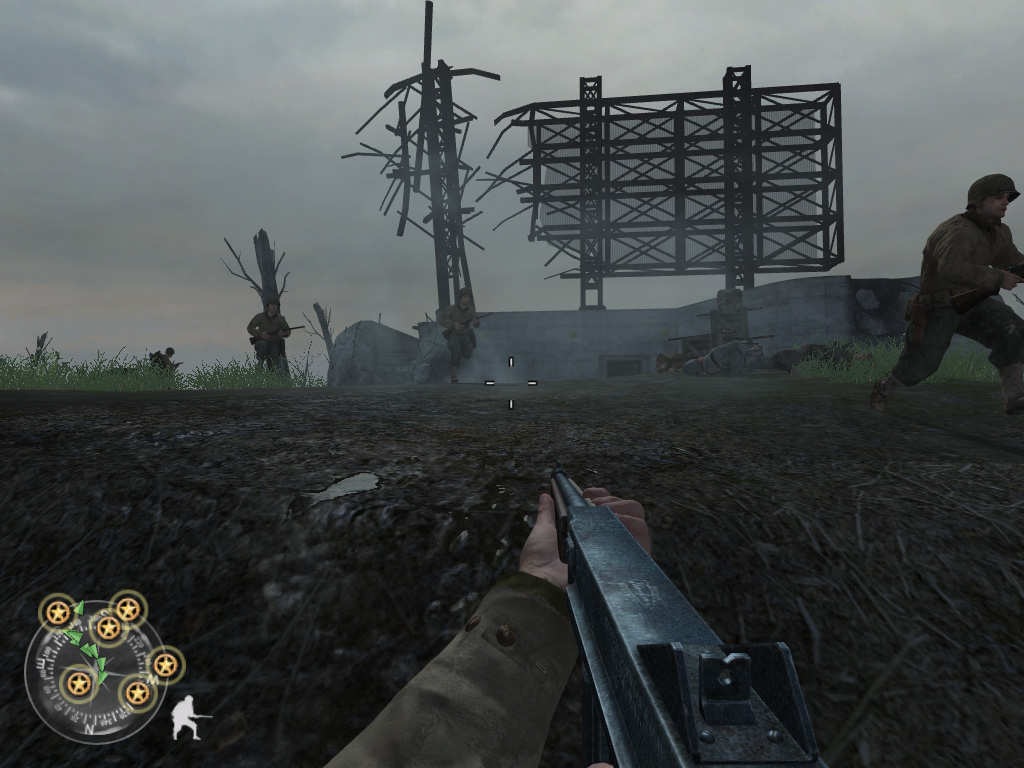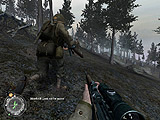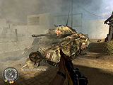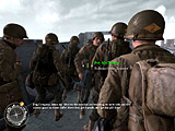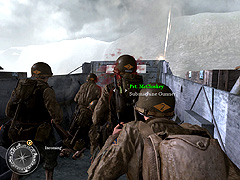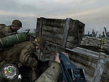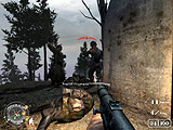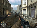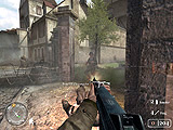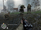 新作,CoD2の制作において,デベロッパであるInfinity Wardが狙ったのが「自由度の高さ」と「グラフィックスの向上」であることは,たぶん間違いないだろう。ご存じのように,前作の大きな特徴は,スクリプトを多用した映画的演出にあった。あらかじめ決まったストーリーに従って設定されたルートを辿ることで,次々にドラマチックな出来事が発生し,まるで戦争映画の主人公になったような気分を味わえるというわけだ。