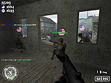 さて,シングルプレイを終わらせたら,お次はマルチプレイであろう。公称最大32人(もっと多いサーバーもあって不思議)まで参加できるマルチプレイには,前作CoDのマップをリメイクしたもの3枚を含め,専用マップ13枚が用意されている。ゲームタイプとしては,おなじみの「デスマッチ」「チームデスマッチ」「キャプチャー・ザ・フラッグ」のほかに,爆弾を仕掛ける側と,それを阻止する側に分かれて戦う「サーチ・アンド・デストロイ」,2か所の陣地を奪い合う「ヘッドクォーター」が用意されている。またチーム戦が多く,ボイスチャットに対応している。