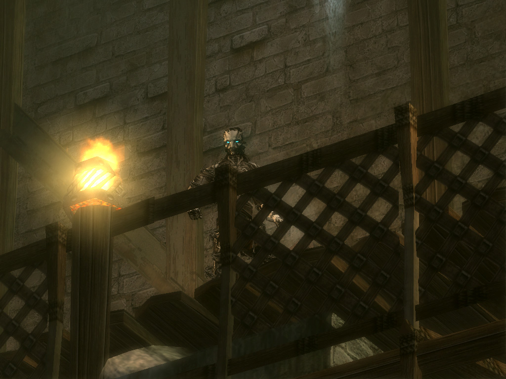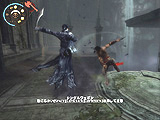 | 二刀装備時には周囲の敵を一度に攻撃するような動きも可能。左手の武器が壊れたら,すぐに別の武器を拾おう | 壁や柱は武器の一つといっていい。ジャンプやウォールランと組み合わせて利用すれば,より立体的な動きも可能に | タイミングよく技が決まると,視点が切り替わって,フィニッシュブローがスローモーション表示される |