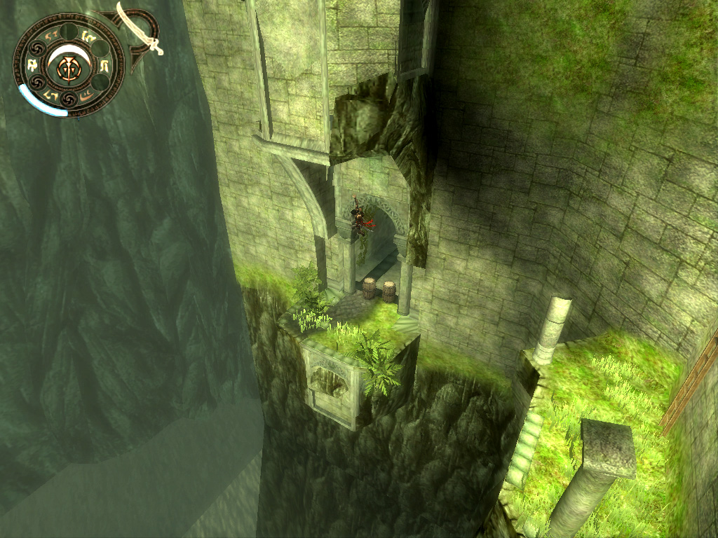 あたりを見回して手を掛けられる柱やわずかな足場を探し,さらにそこに到達するには,どんなアクションをどう使えばいいのかを考え,実行する。そのようにして道なき道をどんどん進んでいくのが,PoPのマップ攻略要素である。