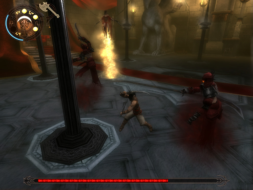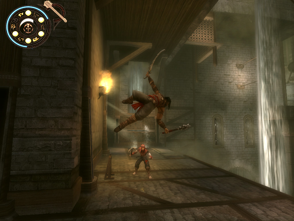 前作「The Sands of Time」で新しく生まれ変わったPoPは,ゲーム中で必要とされるアクションの質が大きく二つに分けられる。一つは襲いかかってくる敵を倒す"戦闘のアクション"であり,もう一方はタイミング良くトラップを避けたり,壁をよじ登ったりすることで先に進む道を見つけていく"マップ攻略のためのアクション"である。