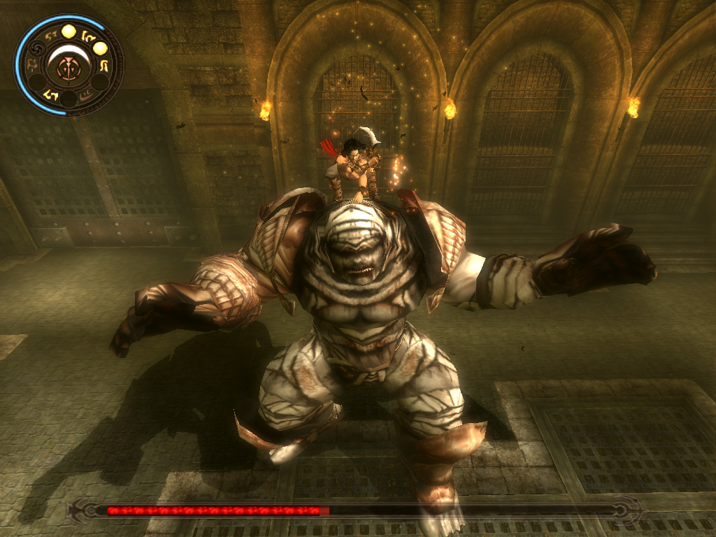 ストーリーの要所要所に配置されたボス戦では,また違った戦闘の楽しさが味わえる。当たり前だがボスは強い。初トライでは相手の体力ゲージの半分も減らせないままやられてしまうケースがほとんどだろう。しかしマップ攻略と同様,四度五度と戦ううちに,ここでもやはり解法が見えてくる。プリンスの最大の武器である時の砂の力を,どんな形で,またどのタイミングで使用するればよいのかが分かれば,とても勝てそうになかった戦いにも勝機が見えてくるのだ。