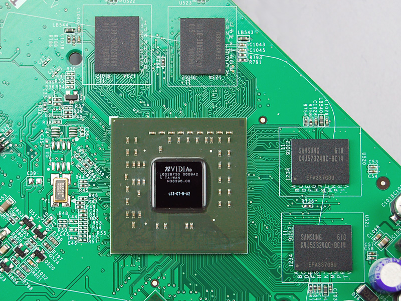 | 入手した個体では,GeForce 7600 GTのリビジョンはA2,メモリはSamsung Electronics製の1.4ns品(K4J52324QC-BC14,512Mbit)を4枚搭載。HSIは本文でも触れたようにA4リビジョンだった |