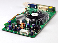 外部インタフェースはデジタル/アナログRGB(DVI-I)×1,アナログRGB(D-Sub)×1,S/コンポーネントビデオ×1。PCI Express x16対応のGeForce 7600 GTリファレンスカードだとDVI-I×2なので,このあたりは評価の分かれるところかもしれない。また,同リファレンスカードには用意されていなかった4ピンの電源コネクタが用意されており,動作には給電が必要なのも,PCI Express x16版とは異なる。