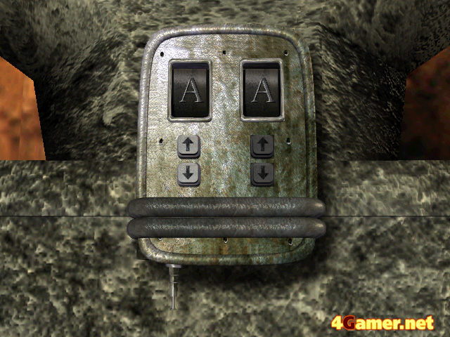 屋敷の1Fロビーにある彫像に備え付けられているスイッチ(?)。アルファベットを正しく組み合わせてSpaceバーを押すと,ある場所に掲げられた絵画が反応し,その中に隠されたものを取り出せるようになる。 正しいアルファベットは,あることで確認可能。近くの床にこすった跡があるので……