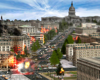 ゲームの舞台となるのはサンフランシスコのほかに,イギリスやロシア,中東,ワシントンDCなどとなっている。空軍関連で著書の多いブラウン氏だけに,ゲームでも低空で攻撃してくる爆撃機が登場したりと,その迫力は満点だ。キャラクターもすべてフルポリゴンで描かれており,爆風で吹っ飛ぶなど個々の兵士の細かいアートワークが確認できる。