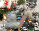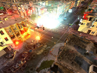 | 右下の建物の屋上には,数名の兵士が配置されているのに注目。強力なタンクユニットに頼らず,兵士の配置にも十分気遣わなければ勝てないようだ |