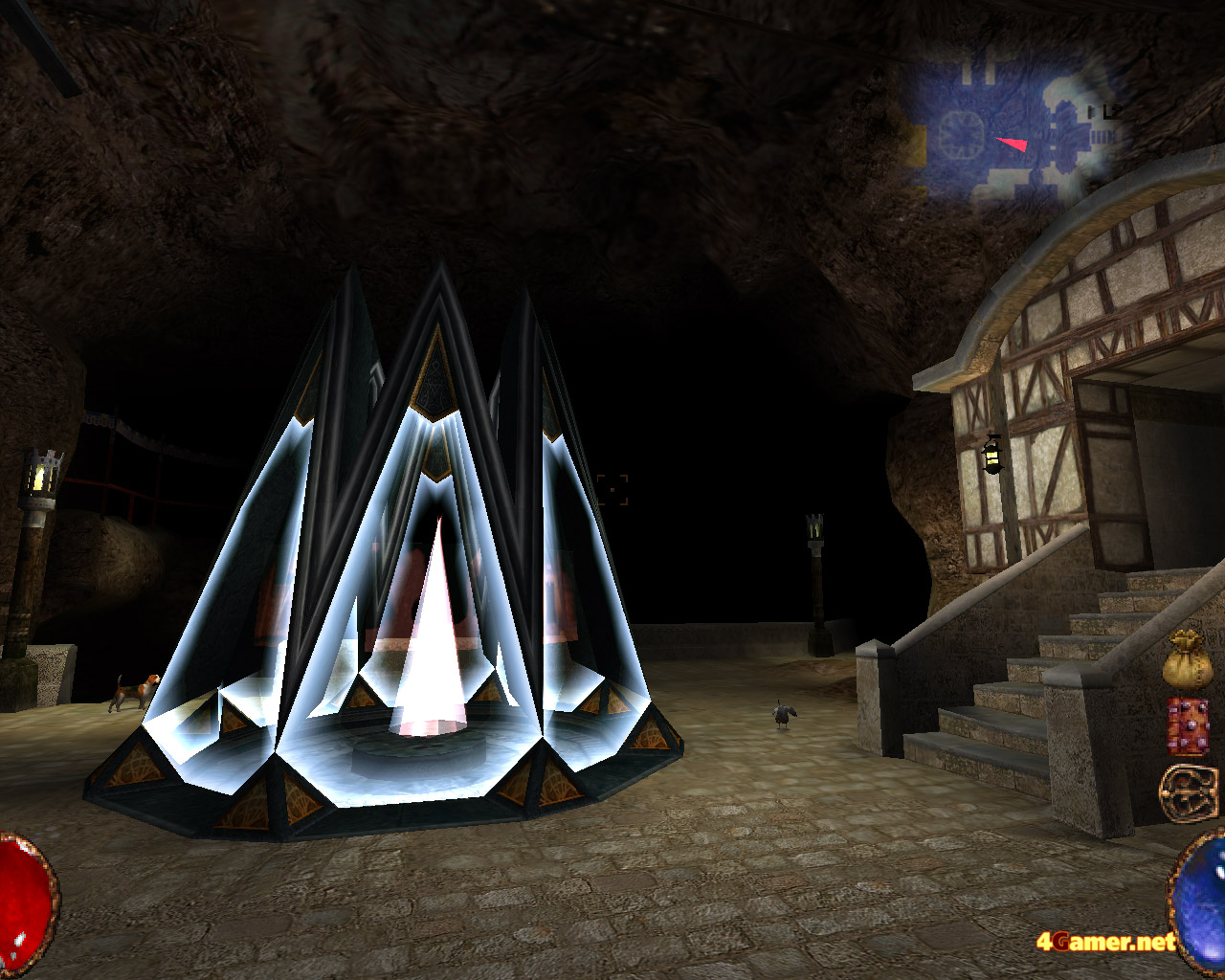 | 画面左の謎の物体は,ポータル。各層に最低一つずつあり,一度発動させたポータル間の移動が一瞬(ローディングの時間分)で行える |