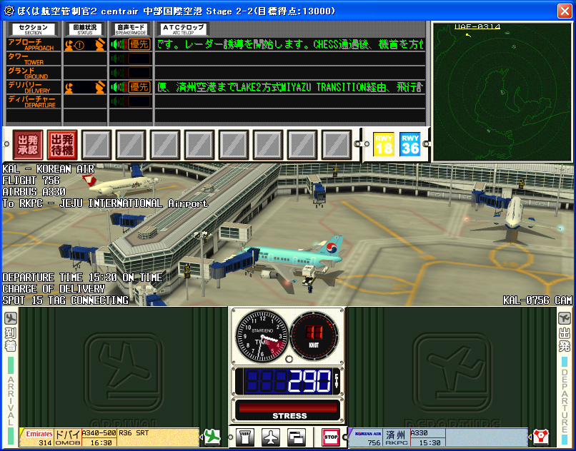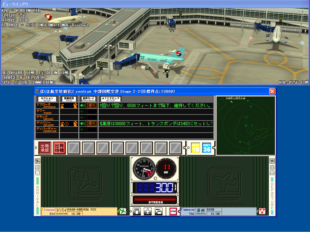 以前取り上げた「新千歳」の場合,前者は例えば「自衛隊・民間共用」という要素,後者は「冬季の除雪作業」が発生するシナリオとして,それぞれ実現されていた。では,本作「セントレア」の特徴とは何だろうか? ゲームプレイそのものに関わる部分から見ていこう。